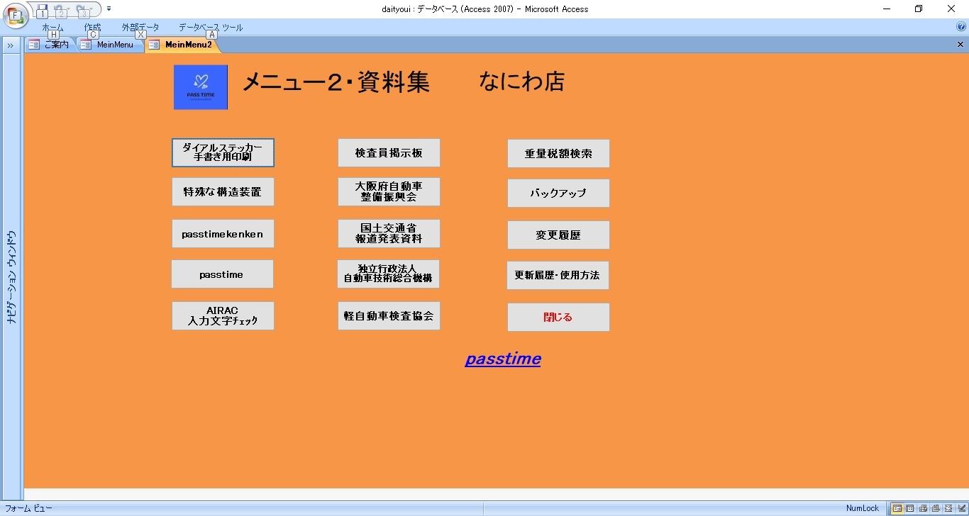 指定整備入庫車管理台帳にダイアルステッカー管理台帳と重量税の更新時管理機能や適合証番号管理、顧客車両管理機能、月次集計機能や更新後車検証お渡し台帳などを盛り込みました。
