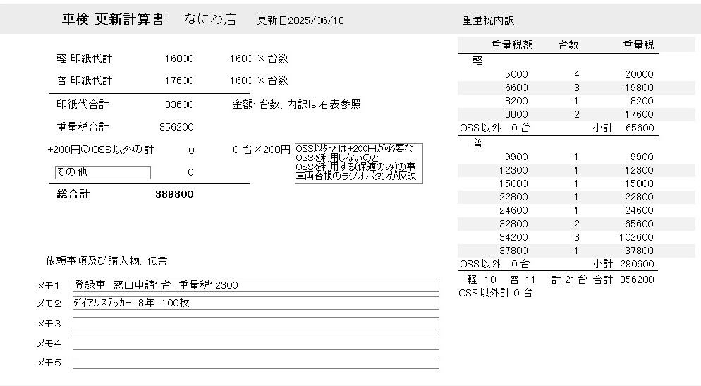 ややこしい重量税の更新時計算管理などができて、更新時の負担軽減や経理の方の業務軽減にもなることうけあいツールです。
